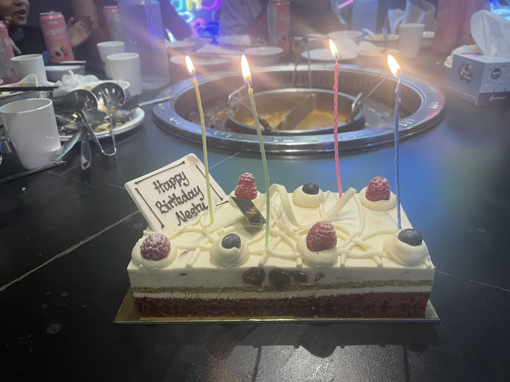 Amaliya is a symphony of colour and flavour. Tiers of red velvet, coconut and pistachio cake are complemented by succulent cherries, creamy white chocolate mousse, and the delicate allure of rose. Elegant, vibrant, and utterly indulgent — a celebration in every slice.